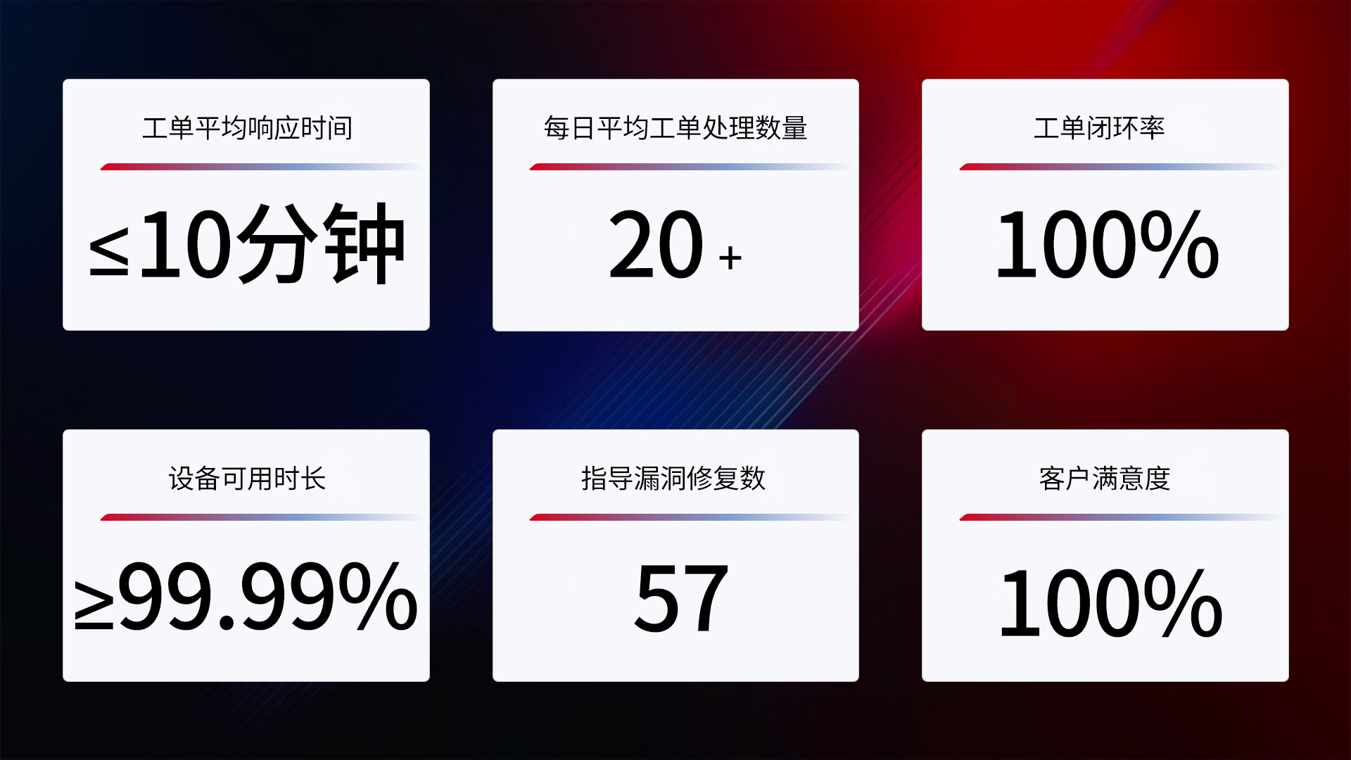 对工单和事件的平均响应时间小于10分钟。对于潜在的业务中断或技术故障能在萌芽阶段被迅速捕获和处理,极大缩短了平均修复时间(MTTR),直接保障了核心业务的稳定性和连续性,减少因故障导致的业务损失。